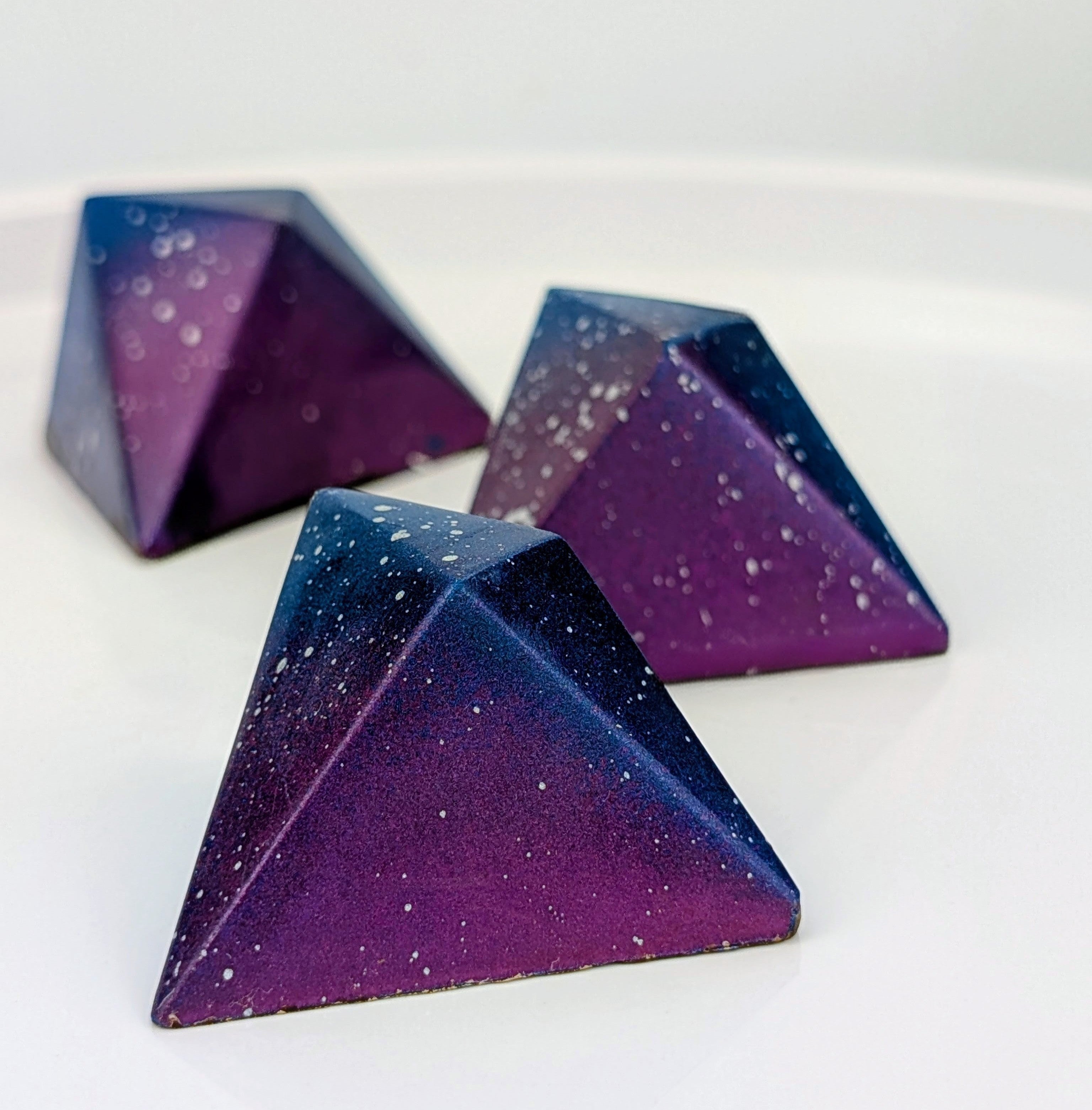 Aurora is the rookie of the collection—making its first public appearance with breathtaking brilliance. Inspired by the northern Minnesota night sky. It's rich blackberry and bright lemon ganache is suspended over a crisp puffed quinoa base, delivering a sparkling crunch. This bonbon debuts as a trailblazer, redefining possibility through bold shape, layering, and fearless contrast.
